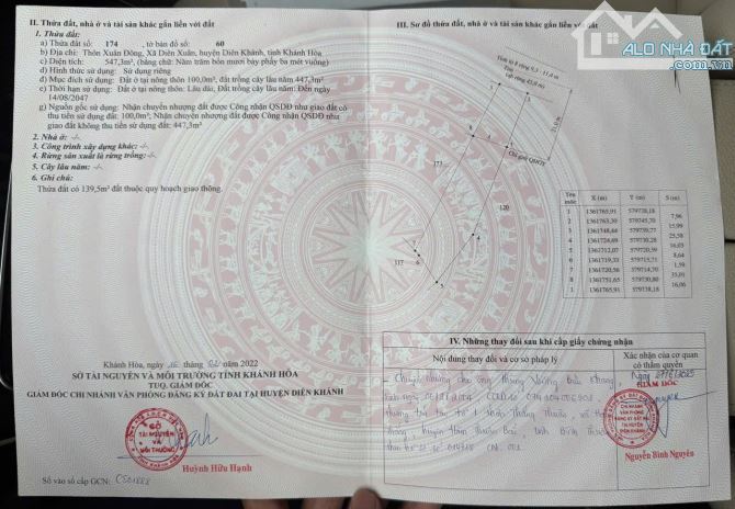Bán đất tặng nhà xưởng mới xây ở mặt tiền TL8 , xã Diên Xuân , huyện Diên Khánh , tỉnh Khánh Hoà Diện tích 547,3m có sẵn 100m thổ cư Ngang 7,96m nở...